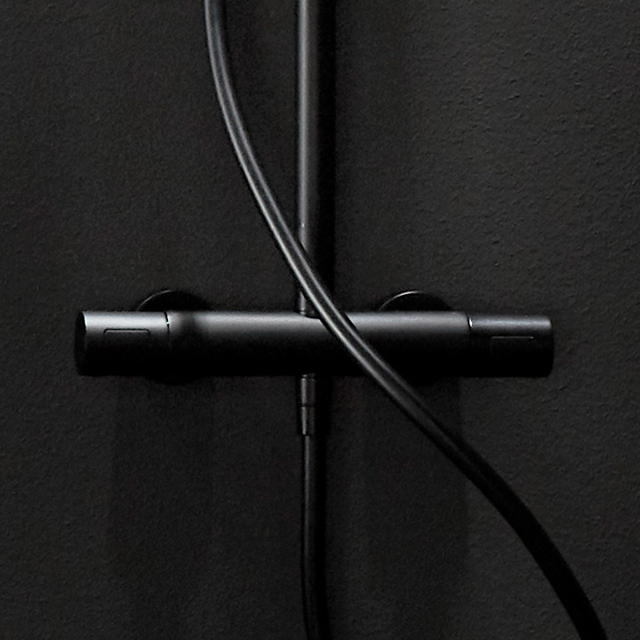 Uutuutemme Hafa Fine on kattosuihku kokonaisuus sirolla pyöristetyllä termostaattihanalla sekä ohuella suihkupäällä josta löytyy kolme eri kokoa. Valitse väreistä kromi, matta musta tai harjattu messinki. Water Save, suihkuletku AntiTwist-toiminnolla, teleskooppisuihkutanko sekä termostaattihana lämmönrajoittimella. Hanan HeatProtection- toiminto estää palovammat.