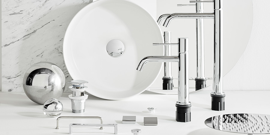 Kylpyhuone sisustuksemme kromina ja valkoisen tyylille Crisp: