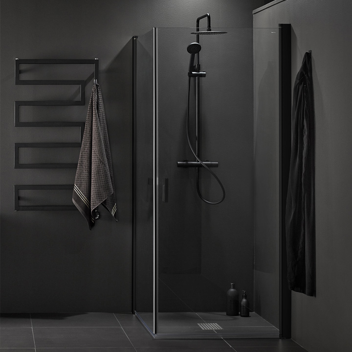 Meillä on useampia malleja käytännöllisiä suihkuratkaisuja hienostuneilla profiileilla ja matta mustilla yksityiskohdilla.