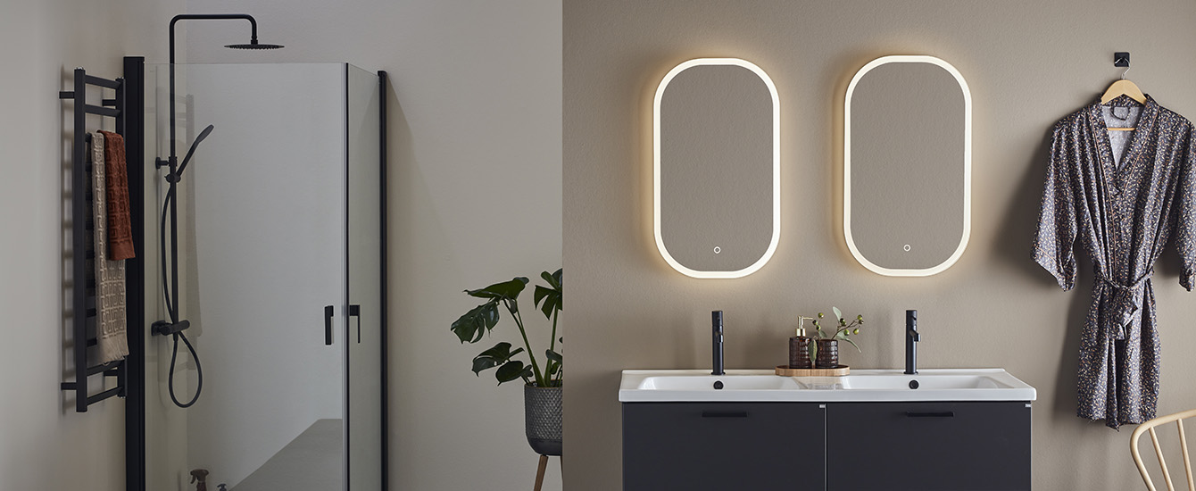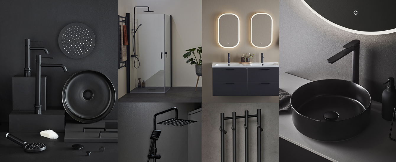 Musta, teollisempi trendi, jonka olemme nähneet jo parin vuoden ajan, jatkuu vuonna 2021 ja jatkaa vuoteen 2022. Meiltä löytyy laaja valikoima allashanoja, kattosuihkuja, suihkuja ja muita yksityiskohtia tyylikkäänä matta mustana. Panosta tumman sävyisessä kylpyhuoneessa toimivaan valaistukseen, joka tasapainottaa kodikkaat tummat sävyt lämpimällä valollaan.
