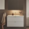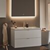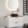 Pehmeästi sulkeutuviin laatikoihin on helppo pääsy kokonaan aukeavuuden vuoksi. Laatikkomatot ja bambu sisustus pitää pikkutavarat järjestyksessä. Kaluste toimitetaan koottuna ja asentaminen on helppoa säädettävän ripustinhelan avulla. Kaluste on mukautettu joko seinä- tai lattiaviemäröintiin. Yhdistämällä sivumoduulin kanssa tarjoutuu lisämahdollisuuksia joista löytyy sopiva kokonaisuus ihan jokaiseen kylpyhuoneeseen. Valitse joko upotettava posliini allas tai pöytälevylle asennettava malja-allas. Täydennä tyyliisi sopivalla vetimellä tai nupilla. Osta lisäksi allashana, pohjaventtiili, vesilukko, laatikonvalaistus ja pistorasia.