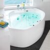 Koko perheen sulavalinjainen kulma-amme. Käytännöllinen istumasyvennys kun kylvet lasten kanssa.