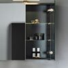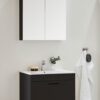 Peilikaapissa molemminpuoliset peiliovet, sametinhimmeä musta tai valkoinen pinta. Säädettävä kiinnityshela helpottaa asennusta, ja asennuksen suorittamiseen riittää vain yksi henkilö. Säädettävät kiinnityshelat. Osta lisäksi GO-sarjan LED-valaisin, 126 72 70 ja pistorasia 126 72 65.