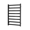 Nelikulmaisesta teräsputkesta valmistettu mustalakattu pyyhekuivain. Vesi- ja/tai sähköliitäntä. Sopii lämmitysverkkoon (ei käyttöveteen). Nämä vaihtoehdot antavat lämpöä ympäri vuoden. Valitse lisävaruste/llitin vaihtoehdon mukaisesti