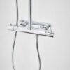 Laadukas kattosuihku kokonaisuus elegantilla suihkulautasella ruostumatonta terästä, Ø200 , Ø250 tai Ø300. Valitse joko kromi, matta musta tai harjattu messinki. Siro messinki termostaattihana lämpötilanrajoittimella sekä HeatProtection-toiminnolla joka estää ulkovaipan kuumenemisen. Suihkutanko teleskooppitoiminnolla. AntiTwist estää suihkuletkun kiertymisen. Käytännöllinen ja tyylikäs käsisuihku ABS. Antikalkki-järjestelmän avulla on kalkki helppo puhdistaa pois suihkulautaselta sekä käsisuihkulta. Water Saven avulla vedenkulutus vähenee.
